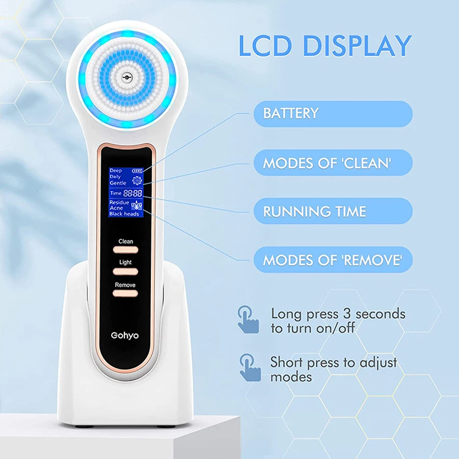 【EXTRA LARGE LCD DISPLAY & TIMER】All the working modes and battery status display on extra large LCD screen in real time,easily control your operation process.Changing the work mode, the timer will re-time and will be displayed,for more accurately skin care.