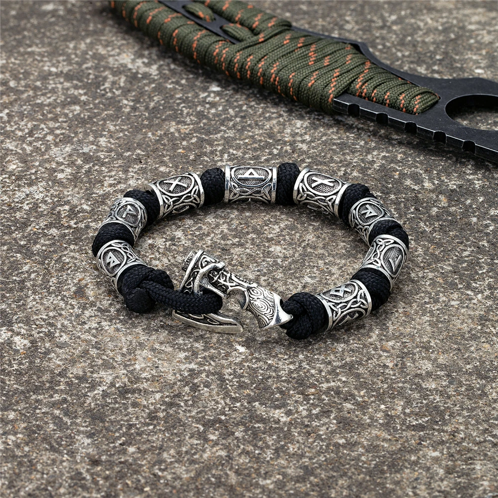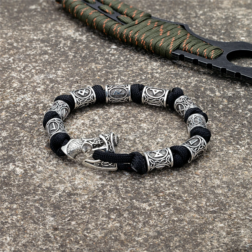 Material: Norse Runes Vikings Ax Survival Rope Bracelets