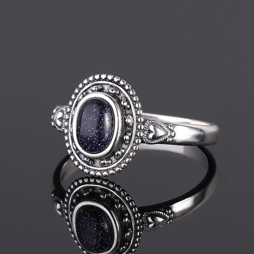 Nowy projekt 5X 7mm niebieski piaskowiec pierścionek biżuteria srebrna dla kobiet imprezowa, koktajlowa prezent urodzinowy
