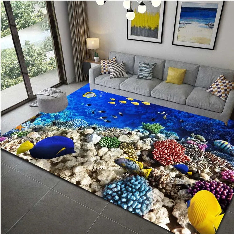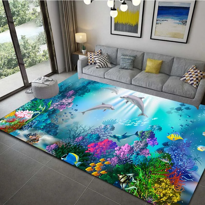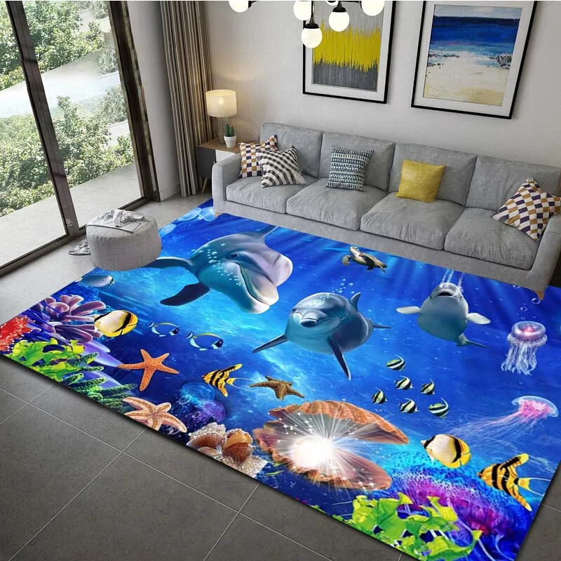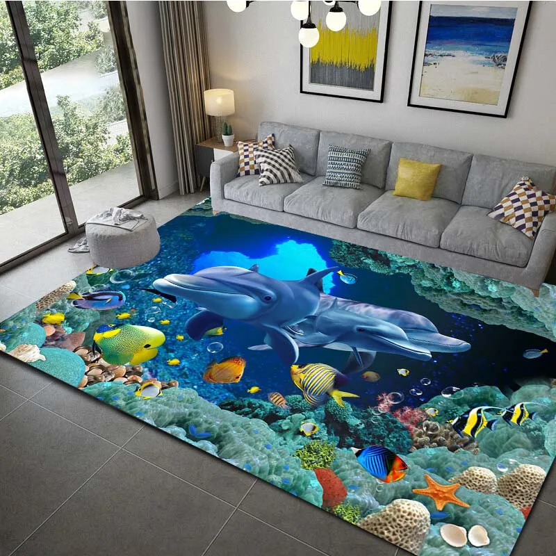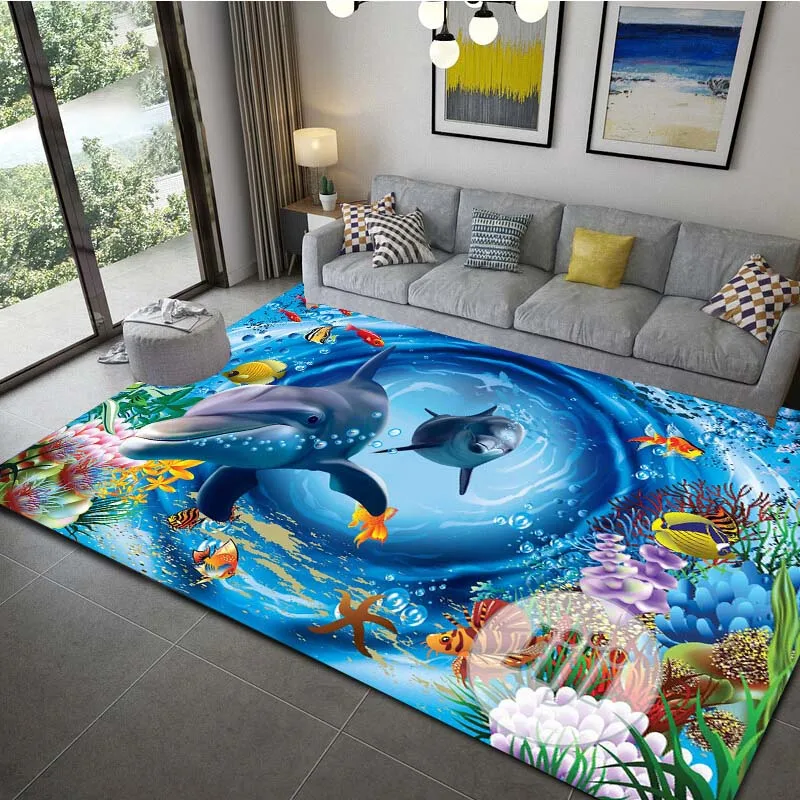 Ocean Dolphin Pattern Floor Mat Waterproof Carpet For Liv…
