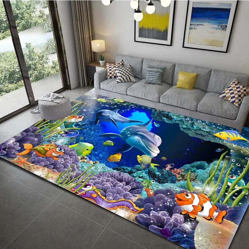 Ocean Dolphin Pattern Floor Mat Waterproof Carpet For Liv…