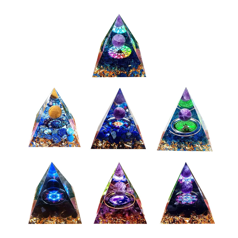 5cm Natural Crystals Orgonite Pyramid Energy Generator Orgone Healing Reiki Chakra Meditation Ornaments Crafts Home Art Decoration Gift