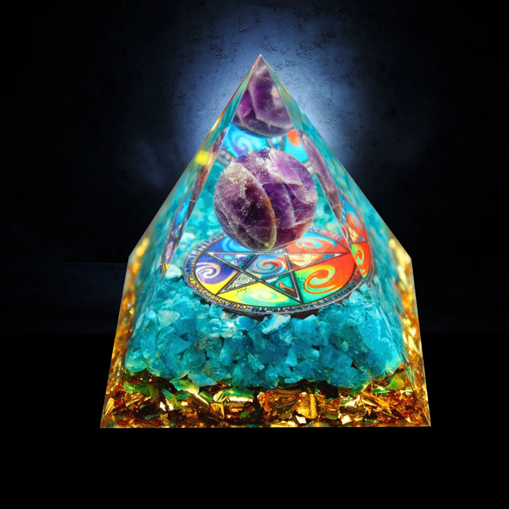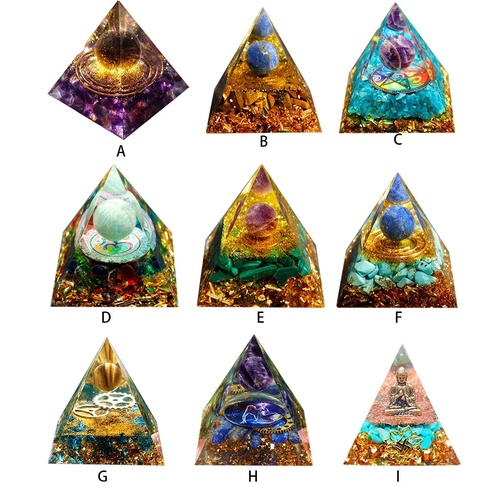 Natural Stone Orgonite Pyramid Crystals Orgone Energy Generator Healing Reiki Chakra Meditation Protection for Home Office Craft Decoration Gift