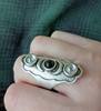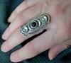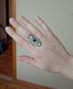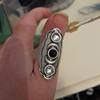 Конечно, фотографии не соответствует (в реальности нет чернения металла, камни мельче, а у светлых камней нет огранки, к тому же метал не гладкий, а весь пошарпаный какой-то, в итоге смотрится дешевле), но все равно очень красивое кольцо. Давно искала такое, чтобы фазы луны шли правильно по порядку (полная, убывающая, новолуние, растущая, полнолуние) и соответствовали цветам (новая черная, а полная белая). Размер регулировать тут почти невозможно, тк металл очень твёрдый, не гнётся. Если приложить больше усилий, скорее всего сломается, тк сплав явно дешёвый и хрупкий. Размер кольца скорее всего около 18-18,5. Моя рука далеко не самая маленькая, поэтому людям с тонкими пальцами точно не советую. А в целом я очень довольна, тк это крутой бохо-ведьминский перстень с не самым избитым дизайном. с продавцом не общались, дошло колечко быстро.