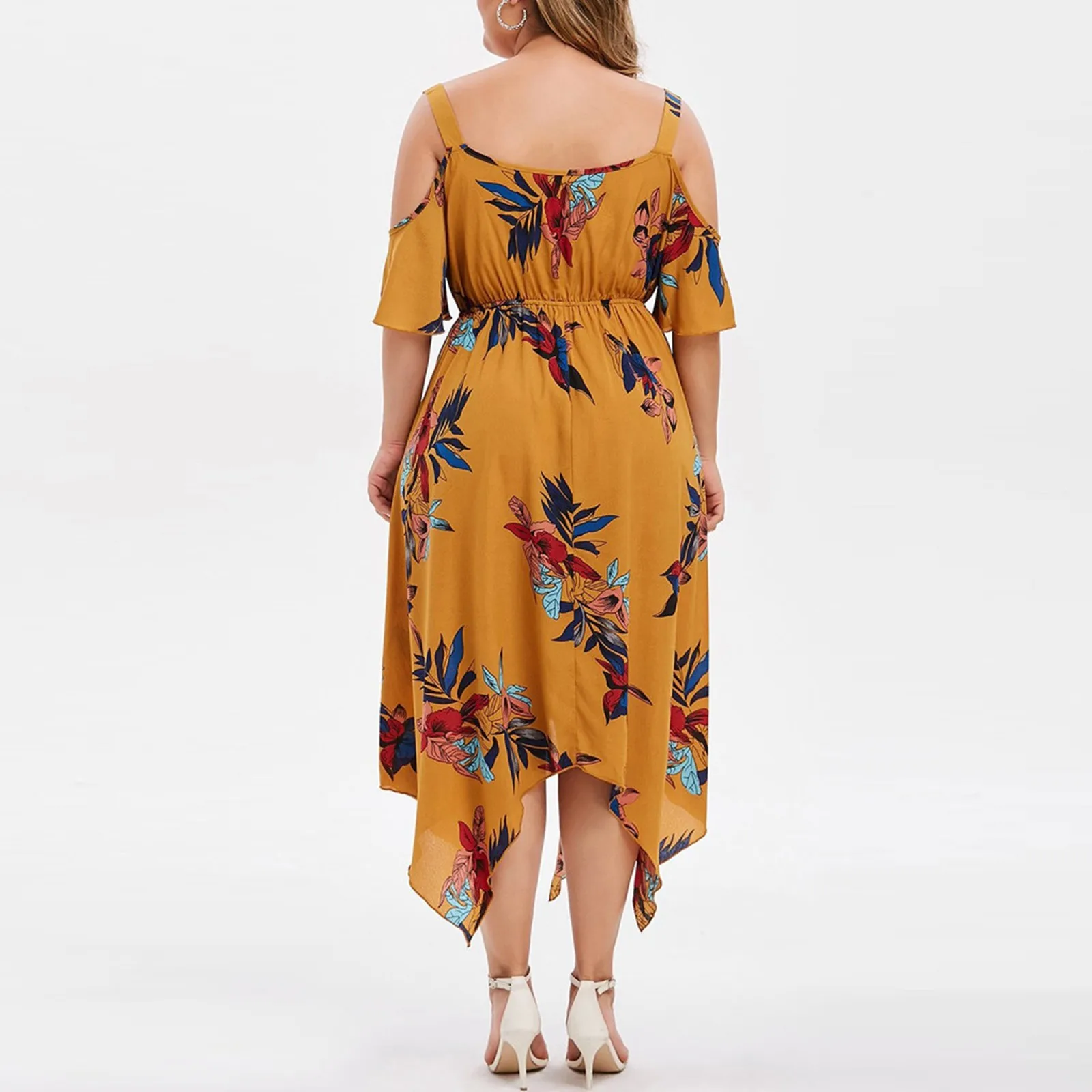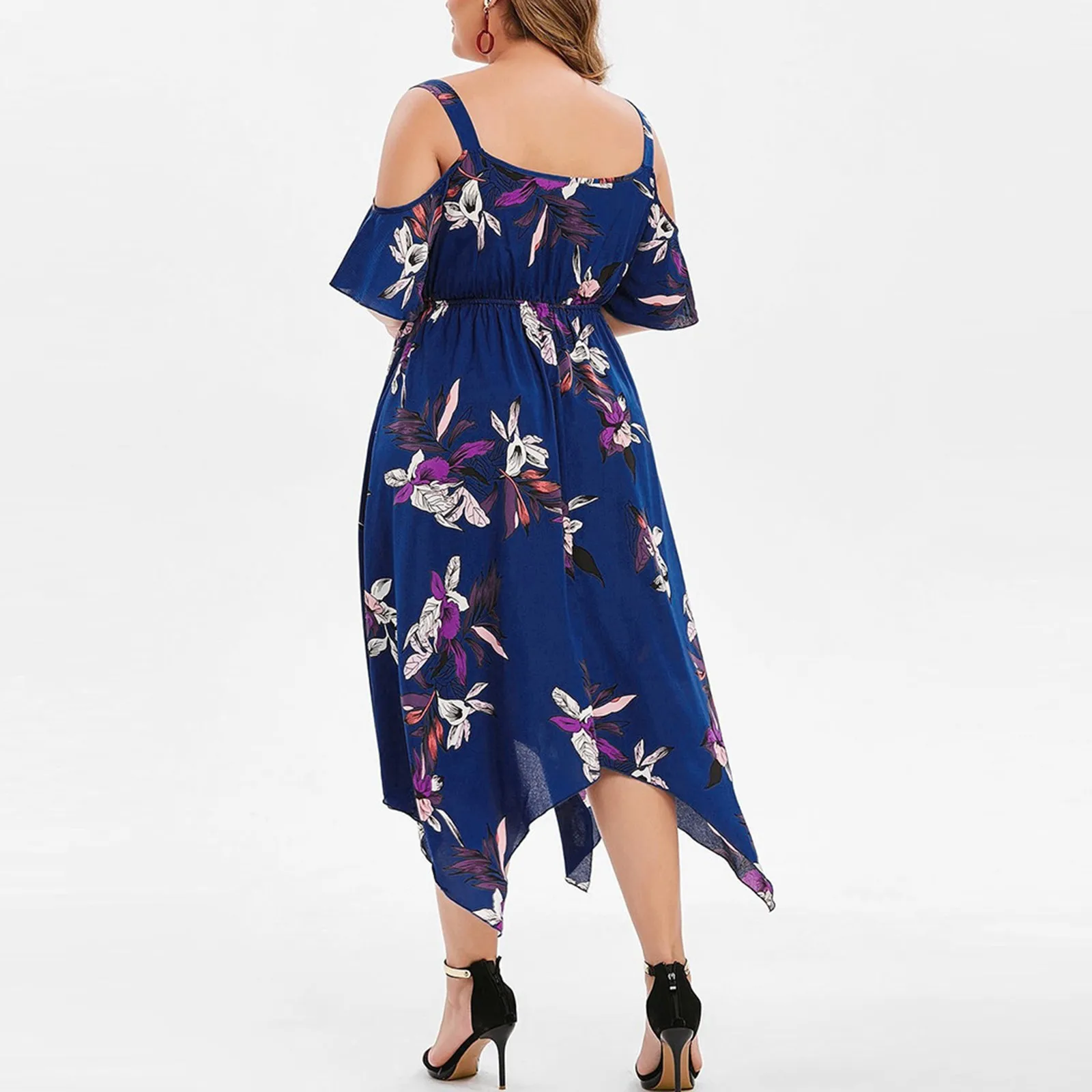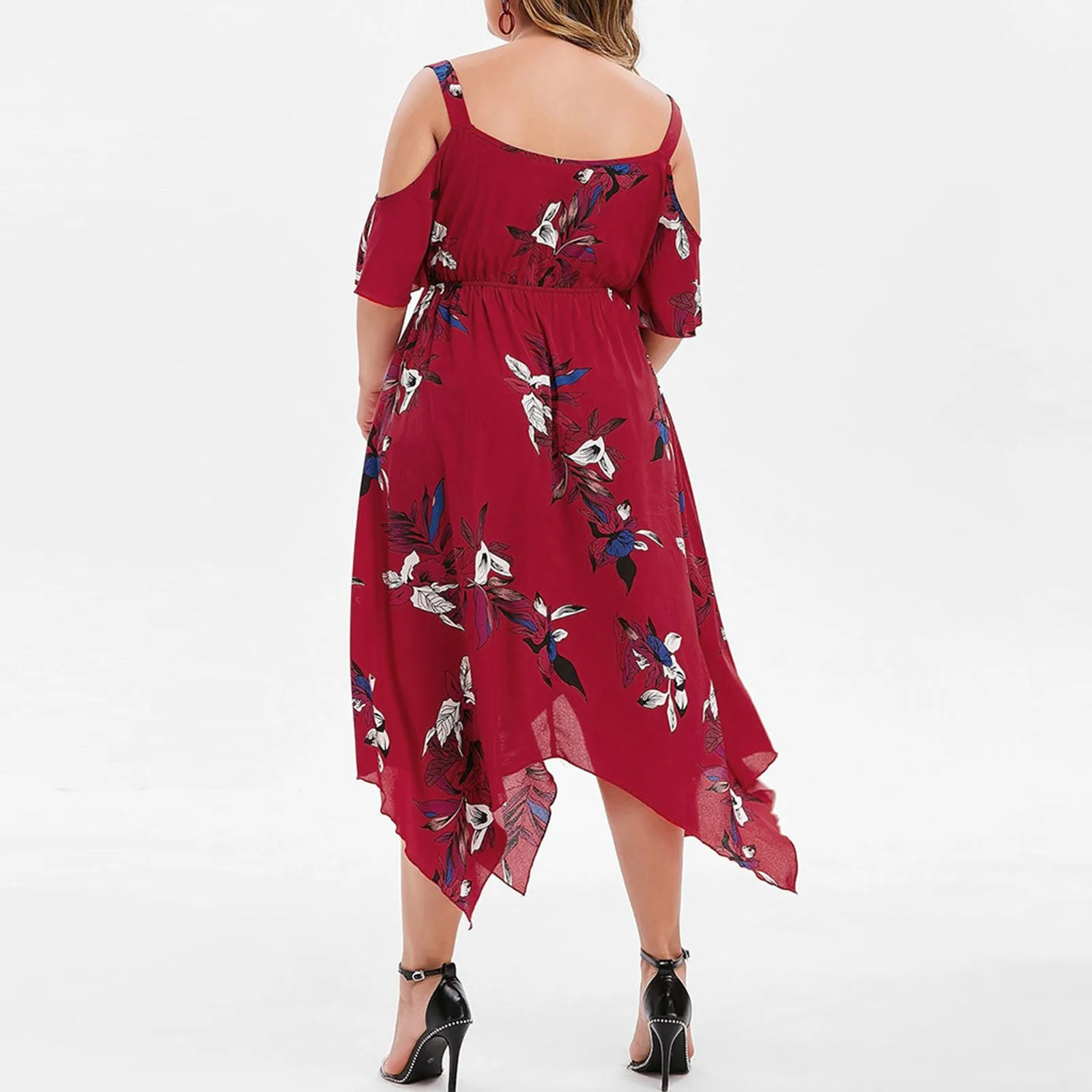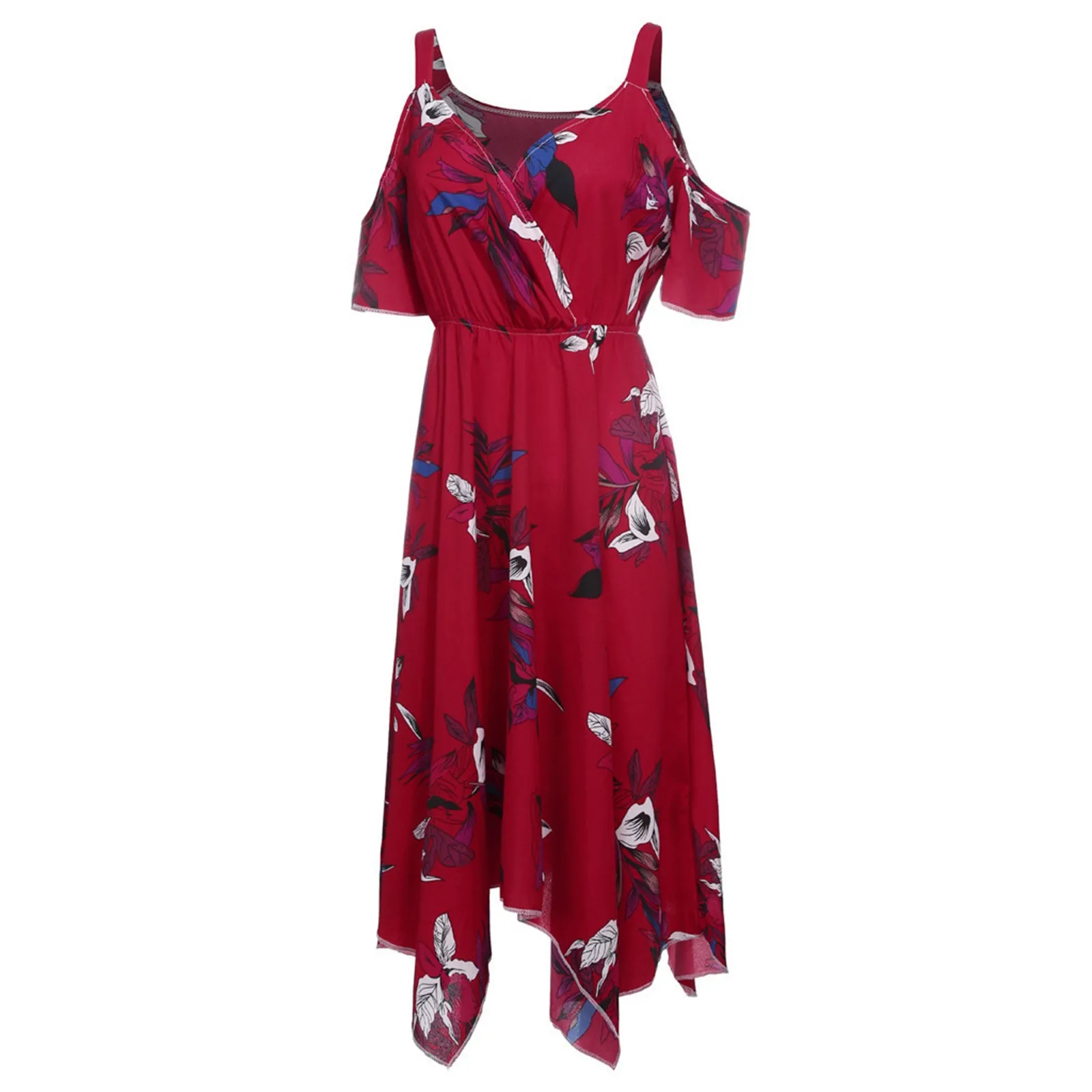 Features:V-Neck,Plus Size,Open Shoulder,Floral Printed,Handkerchief,Casual Dress,Short Sleeve,Fashion Dress, Casual Wear,Stylish and fashion design,Summer and Spring casual Dress.