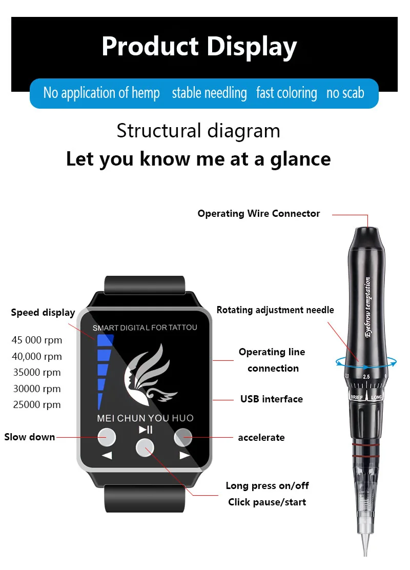 Professional Permanent Makeup Eyebrow Tattoo machine With Digital Control Panel Micropigmentation Device Eye Brow Lip Tattoo Gun