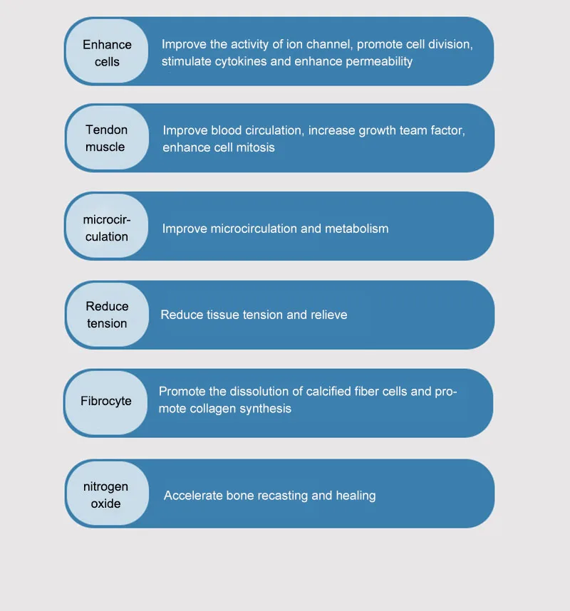— Cellular: Increase in cell membrance transmittance by improving ionic channels activity, stimulation of cell division,stimulation of cellular cytokines production