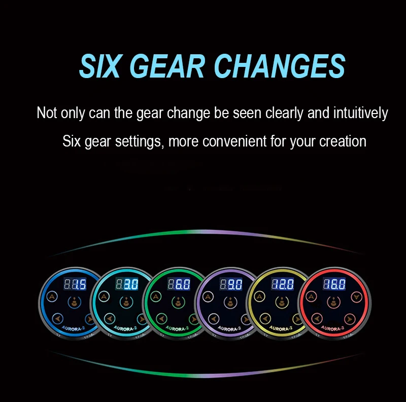 【2】The tattoo power supply has adjust voltage between 0-16 volts by 0.1v increments with precision regulated voltage output and colorful LEDs that indicate the voltage range.