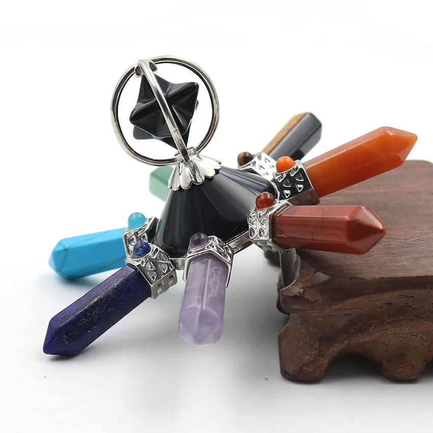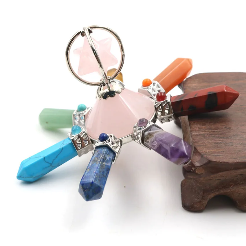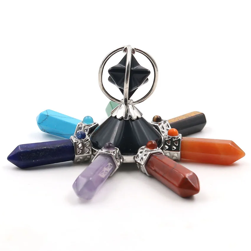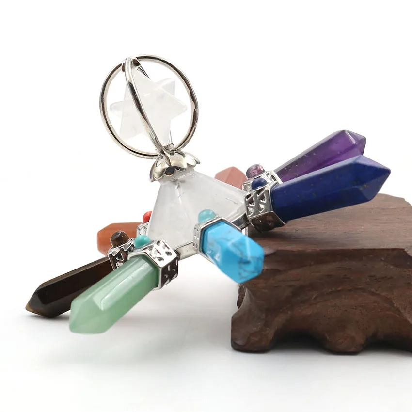 Pyramid Energy Generator Rotate Merkaba 7 Point Chakra Natural Crystal Hexagon Stone Healing Balance Meditation Jewelry