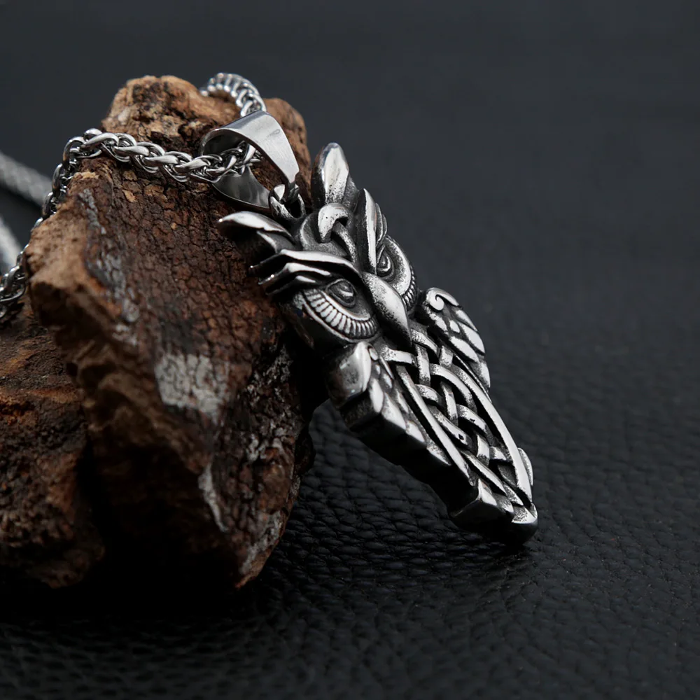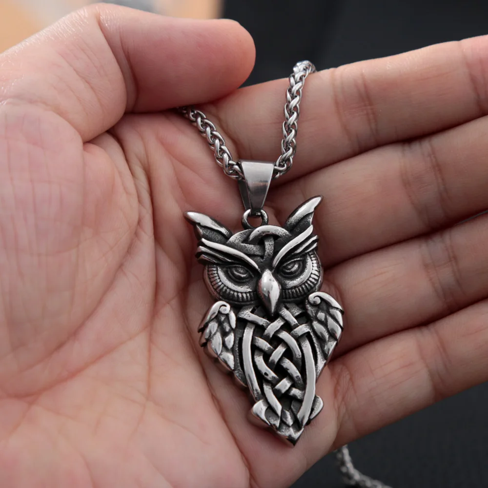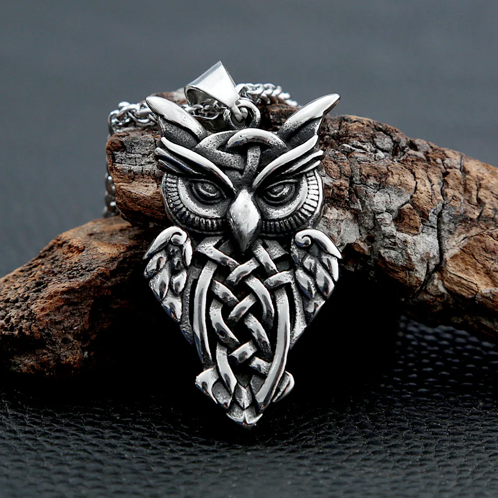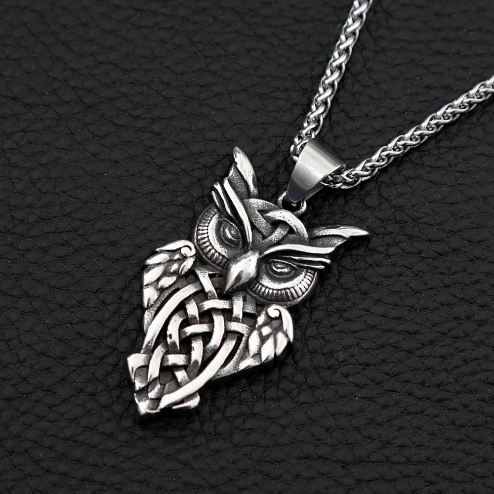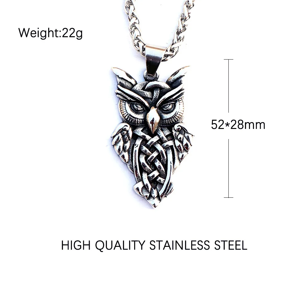 Name:Retro Celtics Knot Owl Pendant Necklace Stainless Steel Scandinavian Amulet Necklace for Men Nordic Viking Jewelry Accessories