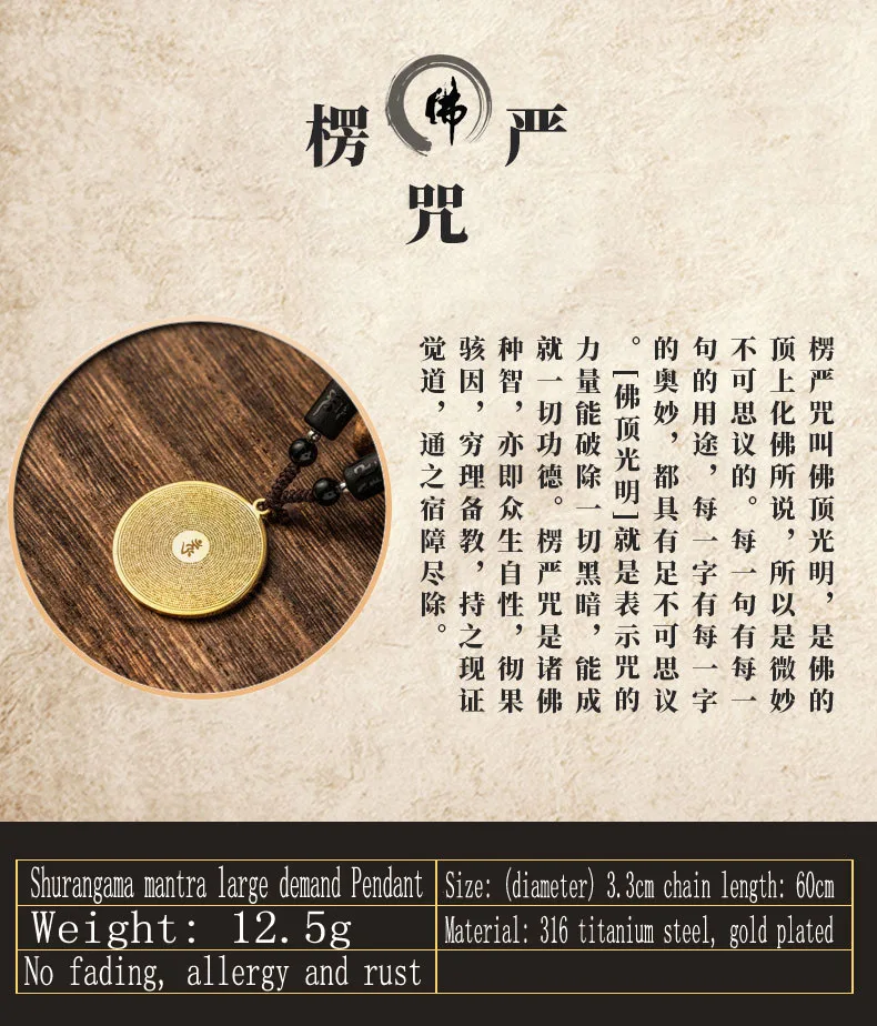 Retro Titanium Steel Shurangama Mantra Sanskrit Large Follow-up Pendant To Protect Buddhist Scripture Body Charm Necklace Tag