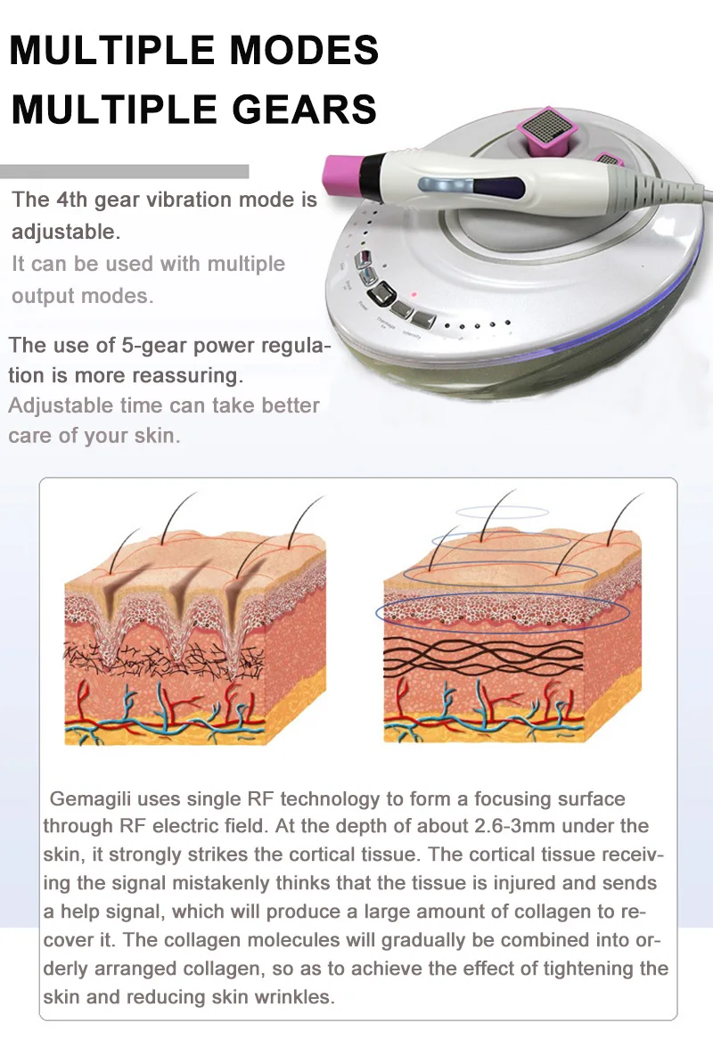 7. Multiple gears of time, vibration, RF output and RF power can be adjusted, you can regulate according to needs.