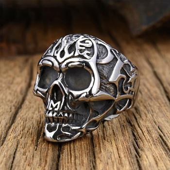Personality Mens Bull Head Skull Ring Stainless Steel Punk Biker Ghost Ring Heavy Sugar Male Gothic Jewelry