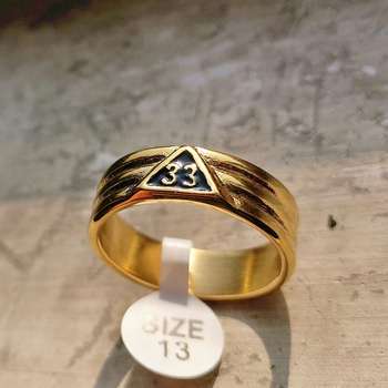 Men's 33rd Degree Scottish Rite Masonic Ring Gold Color Freemason Wedding Band Rings Freemasonry Jewelry Gift