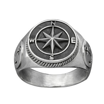 Mens Stainless Steel Compass Sailor Ring Navy Anchor Nautical Rings Mens Punk Biker Jewelry