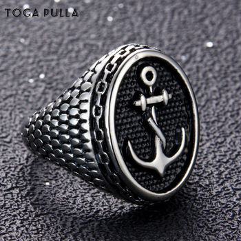 Classic Bumps Anchor Signet Ring Men Women Stainless Steel Punk Motor Biker Ring Unisex US Navy Ship Anchor Ring Size 7 to 15