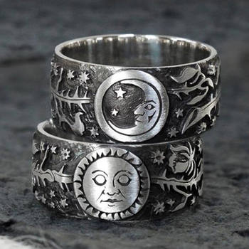 Carved Design Sun and Moon Vintage Women Rings