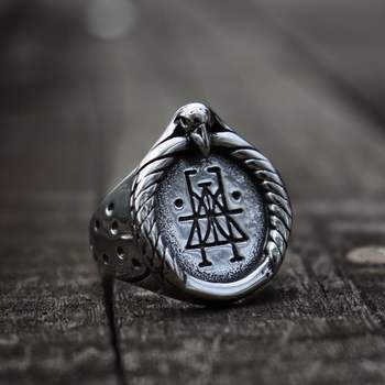 Crow Skull Rune Signet Viking Silver Ring