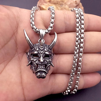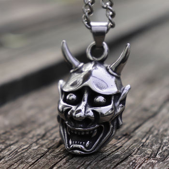 Gothic Punk Mens Anger Hannya Ghost Mask Pendant Necklace