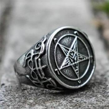 Gothic Occult Church of Satan Pentagram Rune Sigil Stainless Steel Ring Witch Satanic Lucifer Cross Rings Baphomet Jewelry
