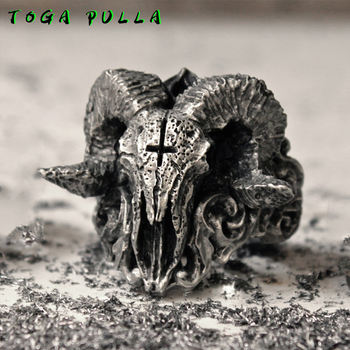 Vintage Punk Gothic Skull Ring Men Stainless Steel Satanic Demon Sorath Biker Ring Male Baphomet Goat Head Pagan Ring Jewelry