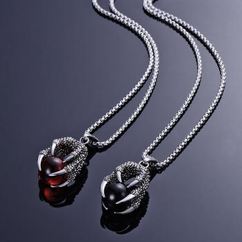 Classic Dragon Claw Stainless Steel Necklace Punk Red Blue White Black Crystal Ball Pendant Necklace For Men Fashion Jewelry