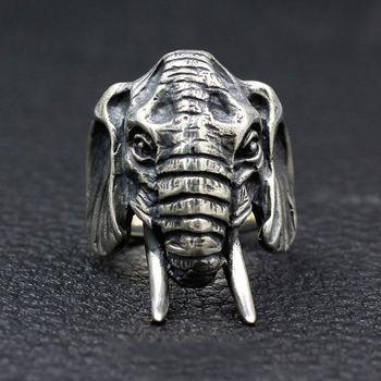 Vintage Elephant Ring Mens Stainless Steel Punk Motorcycle Biker Rings African Tribe Animal Elephants Head Jewelry