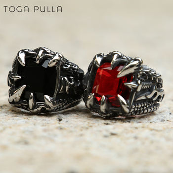 Vintage Oval Black/Blue/Red CZ Ring Mens Women Masonic All Seeing Eye Rings Stainless Steel Punk Gothic Jewelry Dropshipping