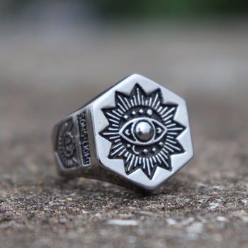 Eye of Providence 316L Stainless Steel Ring Men's Masonic All Seeing Eye Biker Jewelry
