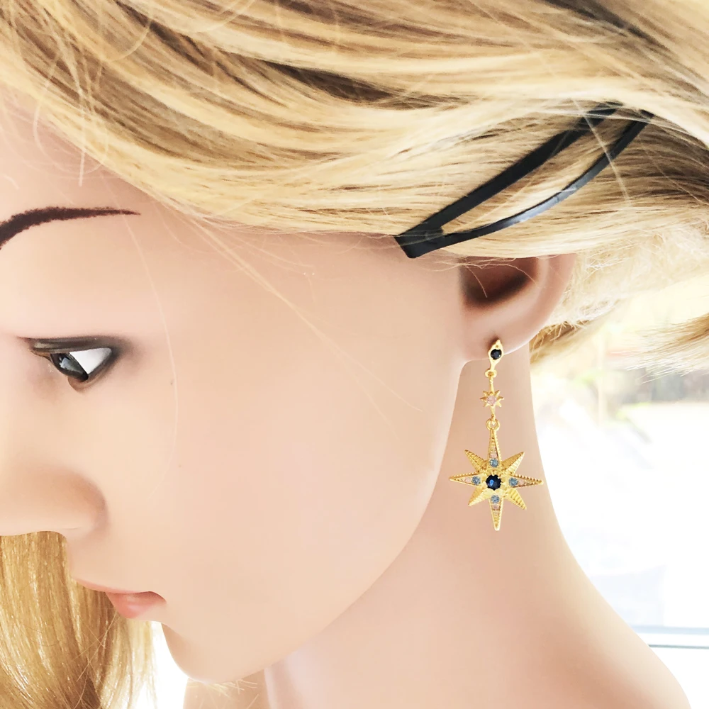 Royalty, gwiazda, księżyc, kolczyki Drop, europa, magiczne, Boho, moda, dobra, biżuteria, kobiety, lato, prezent, srebro 925