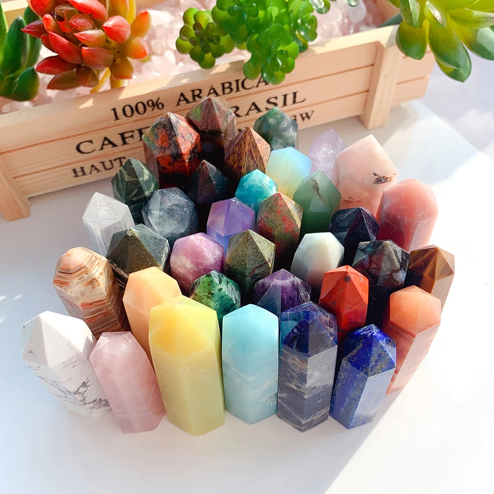 I am in love with this tower of Llanite (a type of Rhyolite), other names are Vulcanite and Que sera. It's not a very well known stone but it's very interesting and beautiful. It has many different minerals like blue quartz (the blue spots) feldspar (orange and grayish spots), biotite and can contain fluorite, apatite and traces of magnetite. It has a gentle energy so I recommend to buy. I just regret that I didn't buy the biggest size. Thank you store for this beautiful sample