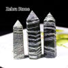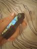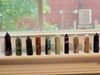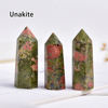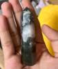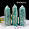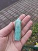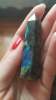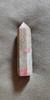 I am in love with this tower of Llanite (a type of Rhyolite), other names are Vulcanite and Que sera. It's not a very well known stone but it's very interesting and beautiful. It has many different minerals like blue quartz (the blue spots) feldspar (orange and grayish spots), biotite and can contain fluorite, apatite and traces of magnetite. It has a gentle energy so I recommend to buy. I just regret that I didn't buy the biggest size. Thank you store for this beautiful sample