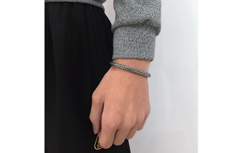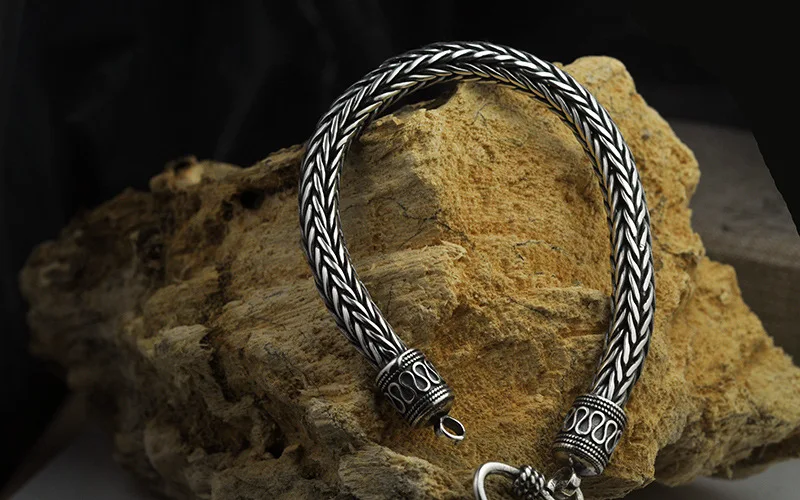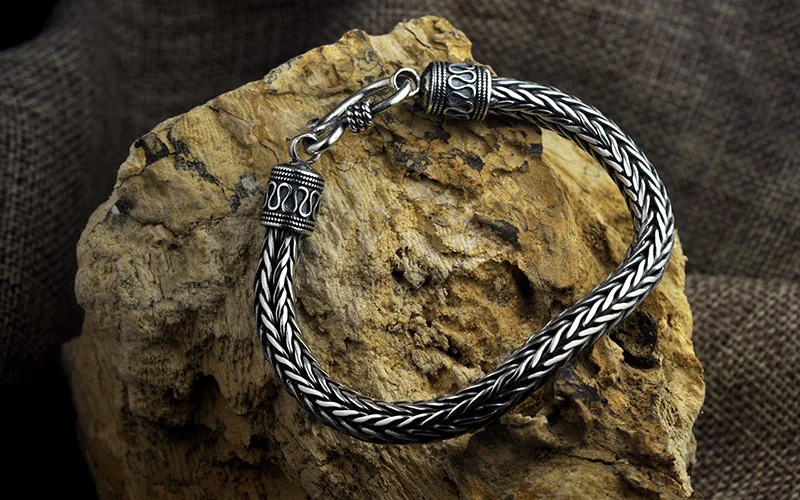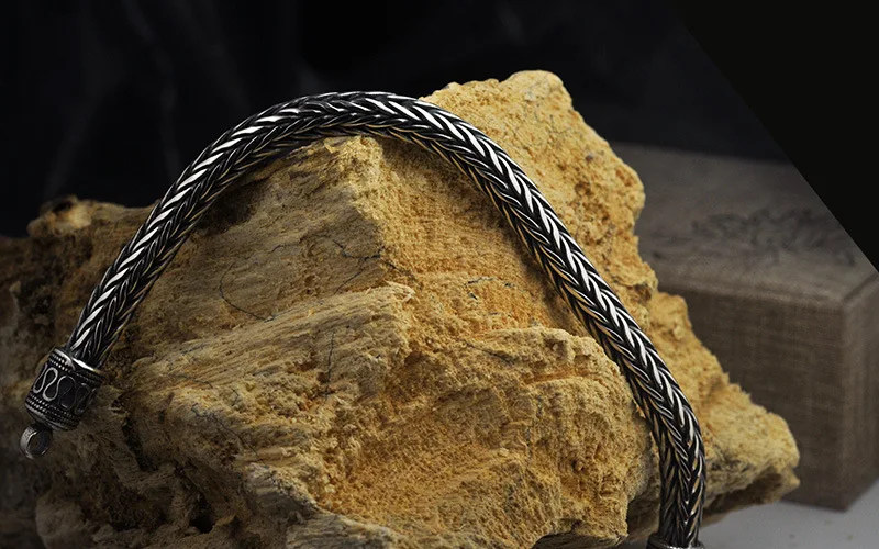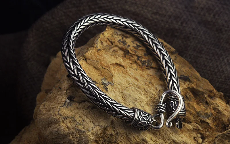 Product name: S925 Antique Sterling Silver Vikings Bracelet as men gift with wood box