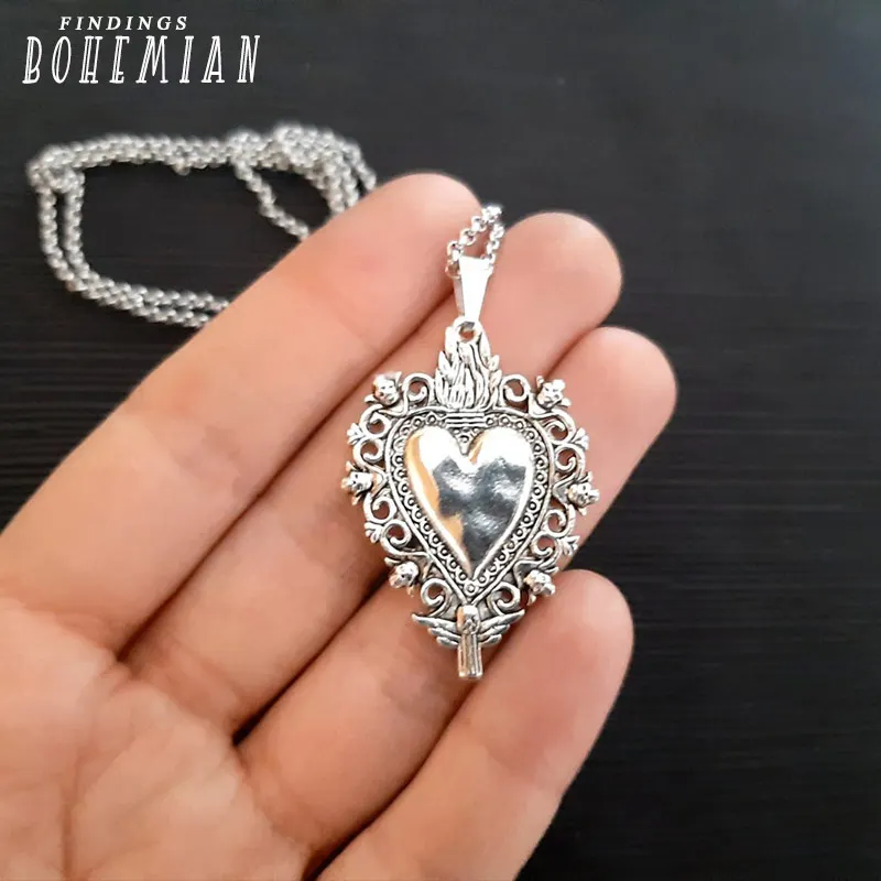 Sacred Heart Necklace, Ex Voto , Heart Necklace, , Mement…