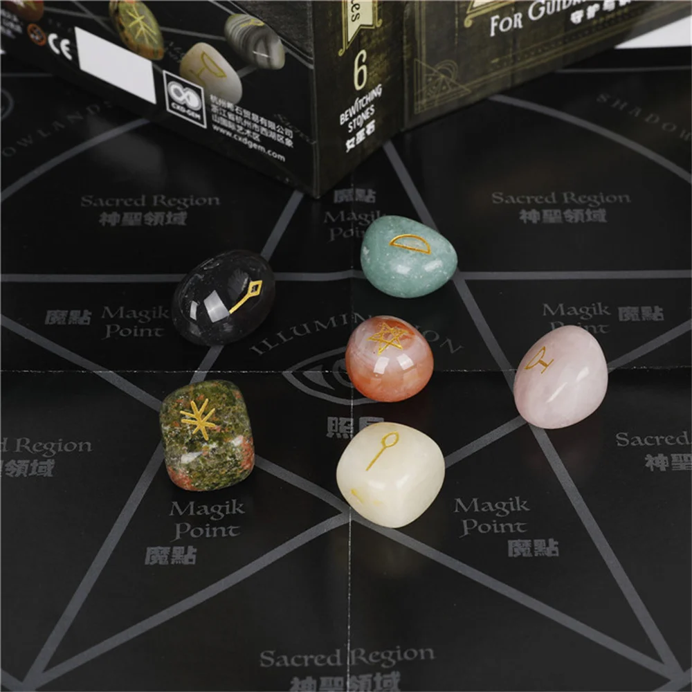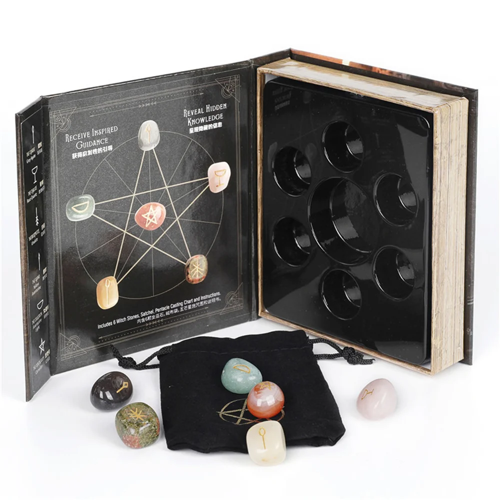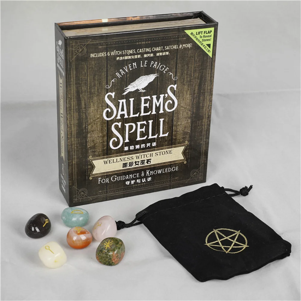 Salem’s Spell Kit: This box is the key to witching wellness. On the front of the box, it states “Wellness Witch Stones, For Guidance and Knowledge.” After opening the front cover of the box, you can see 6 small stones (Grey Agate, Rose Quartz, Unakite, Yellow Aventurine, Aventurine Light and Brazil Agate), each with different symbolic properties. The box also contains a satchel for portability, a pentacle casting chart and an instruction booklet to help you and others receive inspired guidance and unveil hidden knowledge.