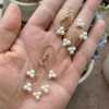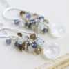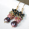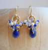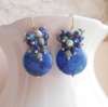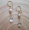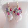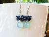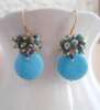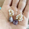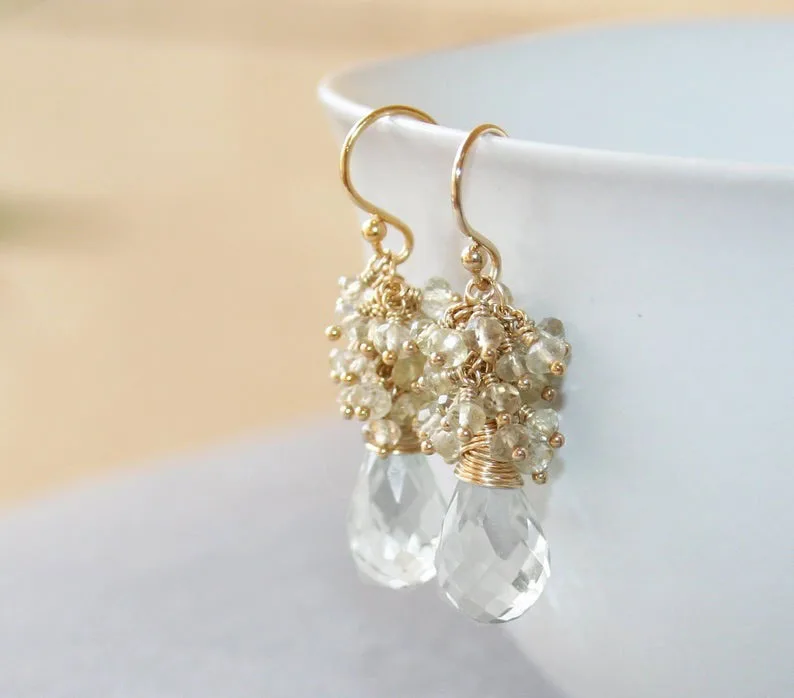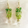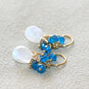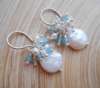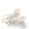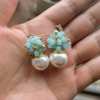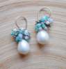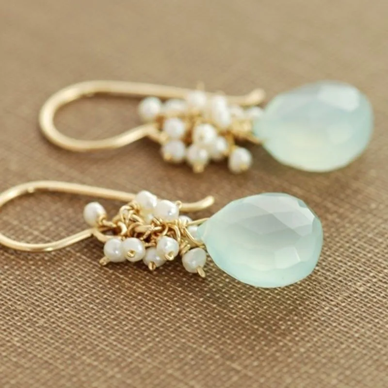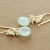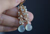 Seafoam Chalcedony Seed Pearl Earrings Handmade Gold Dangle Earrings with Pearl Clusters