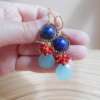 Seafoam Chalcedony Seed Pearl Earrings Handmade Gold Dang…