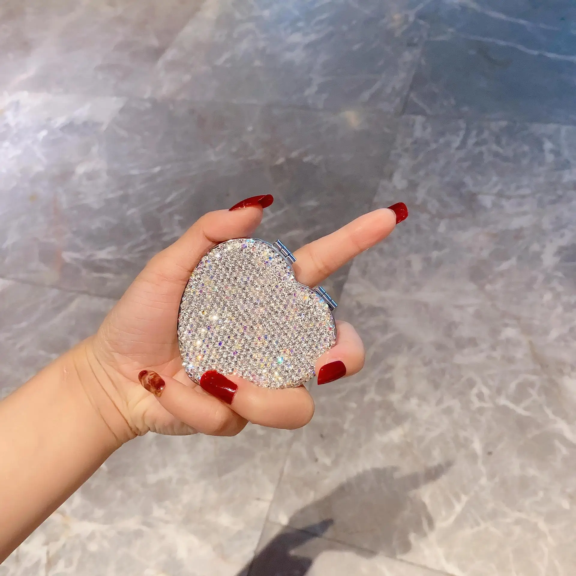 Shiny Diamond Love Heart Mirror Mini Portable Pocket Comp…
