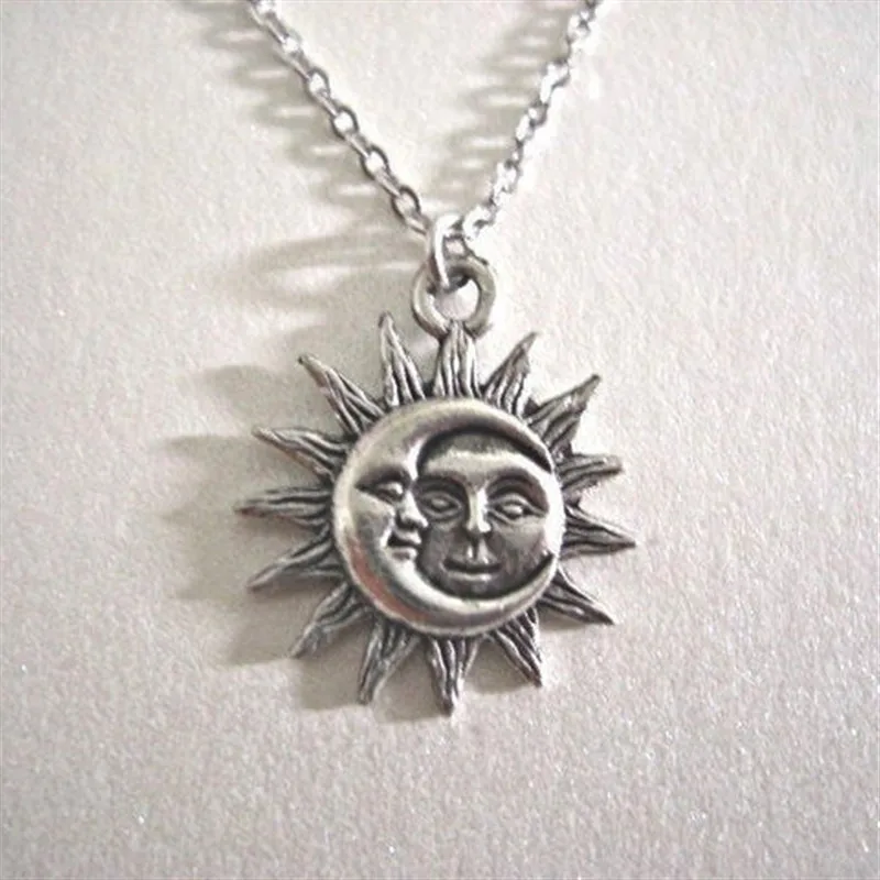 Silver Colour Sun And Moon Necklace Charm Celestial Jewelry Dainty Love Friendship Soulmate Gift For Her Fashion Women Men 2020