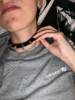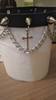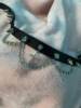 Silver cross choker with hanging lightweight aluminum curb chains and silver spikes. The chokers length can’t be longer than 41 cm