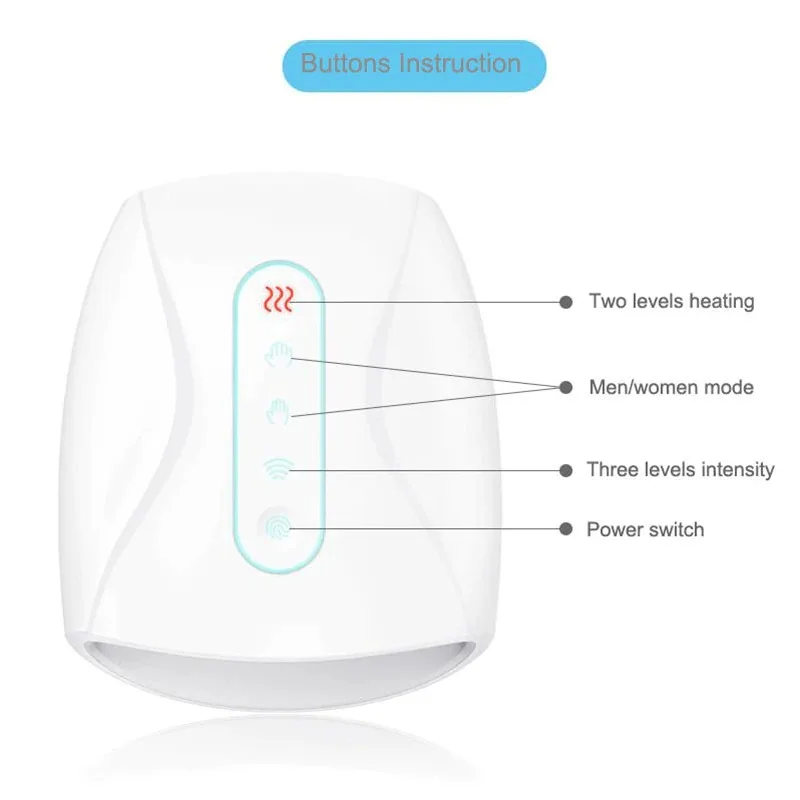 Intelligent air pressure, point massage, heat compressure, massages the pressure points around the palms and fingers. Great Gift for people who use their hands more without relaxation such as computer worker, pianist and housewife etc. The Total Hand Massager squeezes away the stress and strain of daily life to give you a robust massage experience that’s nothing like you’ve ever tried before! The Hand Massager is designed to soothe and restore hands. Simply place your entire hand in the soft, cloth-lined chamber and turn it on. Built-in air pressure inflate and deflate to squeeze away aches and stress. With the same time, the heat compression function to care your hand skin.