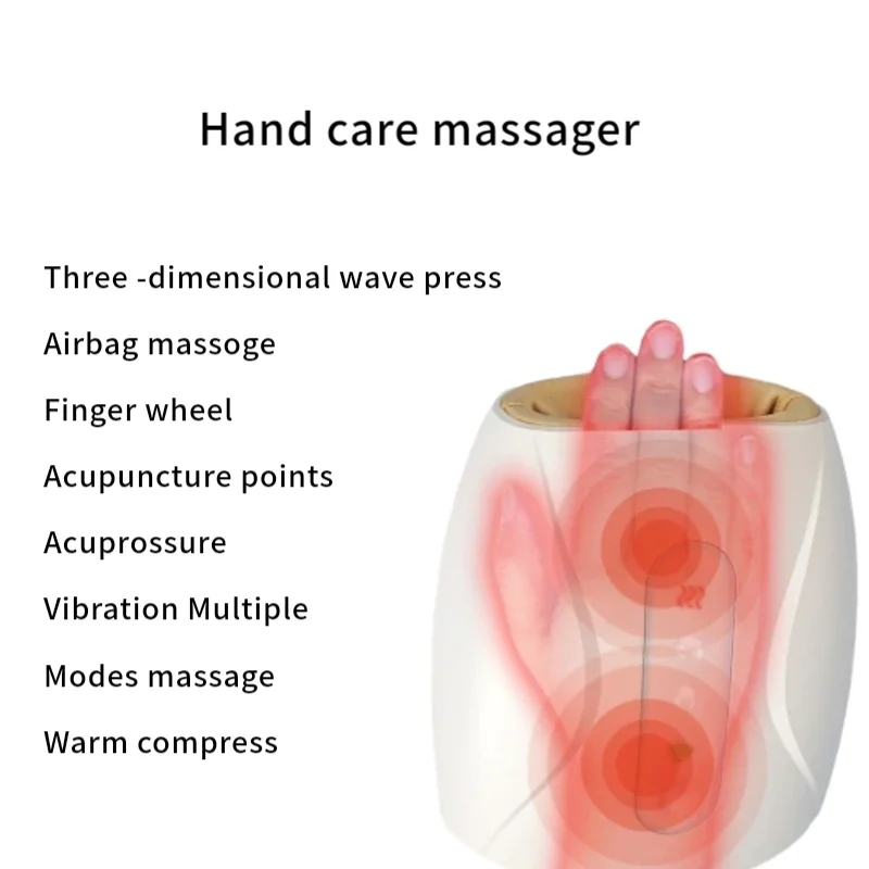 2.2 temperatures and 6 massage methods are carried out alternately (massage hands in several parts, pushing and pressing respectively,Airbag massoge ,Finger wheel,Acupuncture points ,Three -dimensional wave press,Acuprossure, Vibration Multiple ,modes massage ,Warm compress)