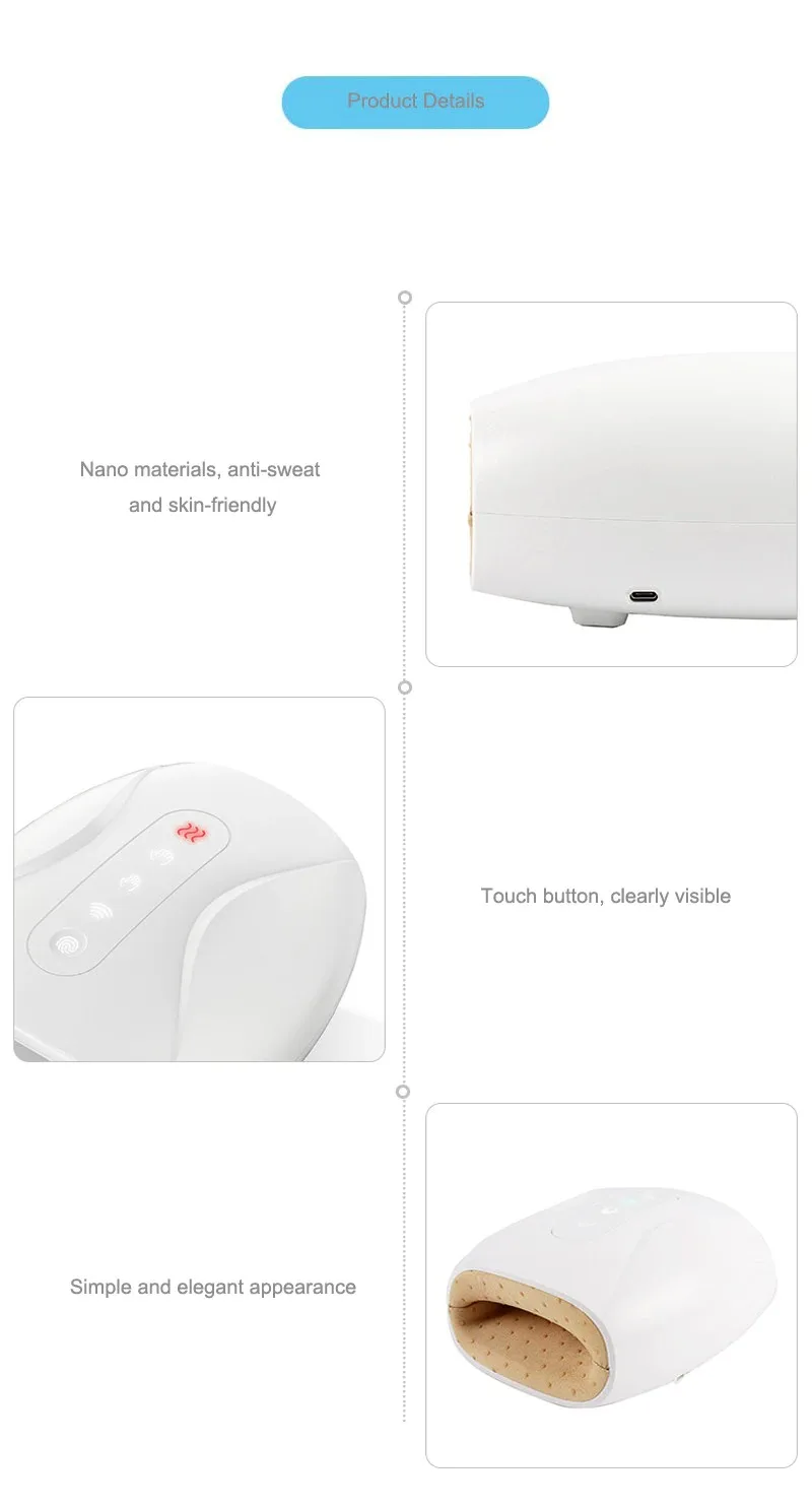 6.Improve the joint flexibility from palm to each finger.Cover the hand with air bag,gently rub, push and press,just like someone is massaging you.