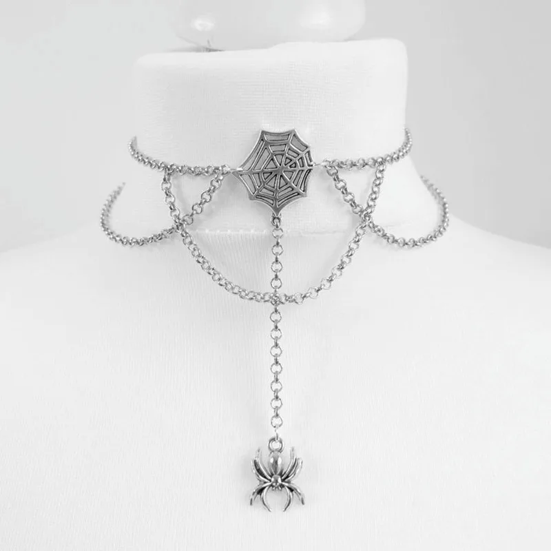 Chain choker with a spider and web pendants.