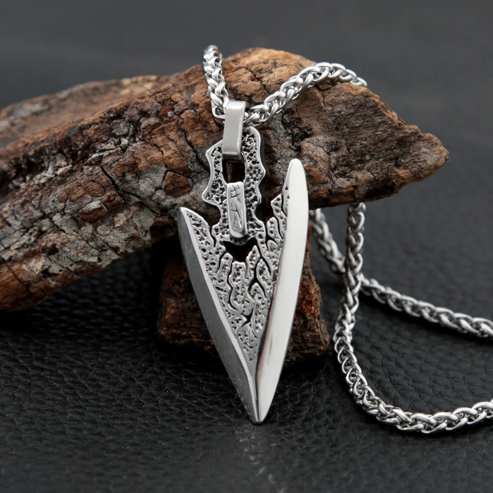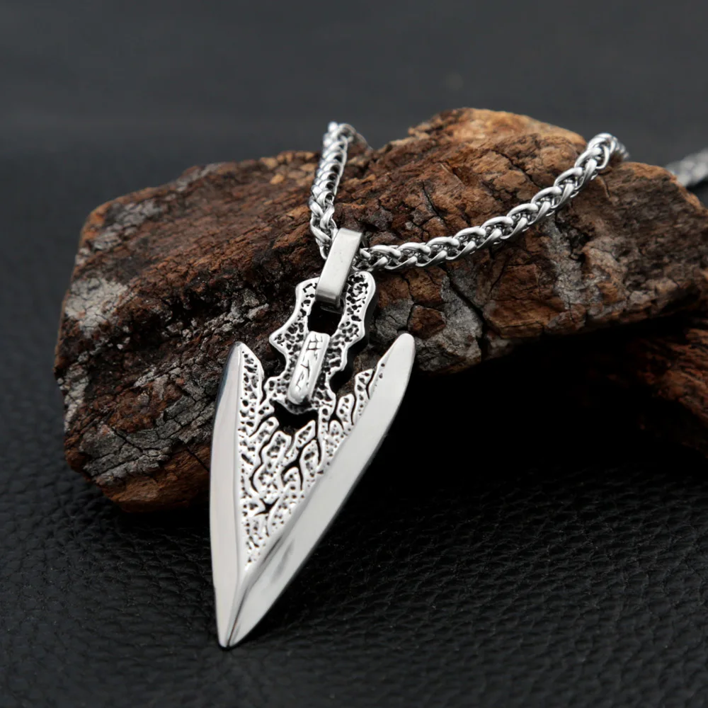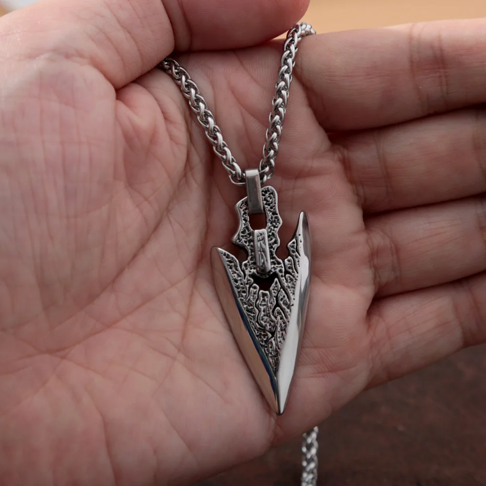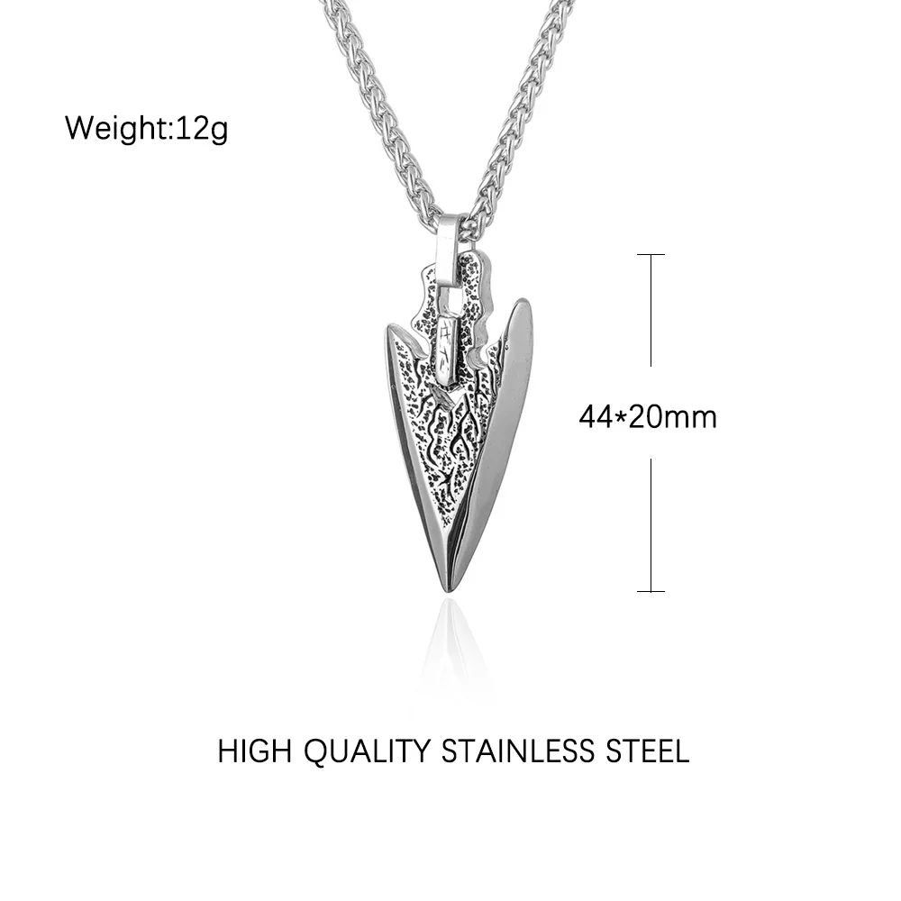 Name:Stainless Steel Arrowhead Long Chain Necklace for Men Retro Spear Viking Necklace Pendant Classic Nordic Amulet Jewelry Gifts