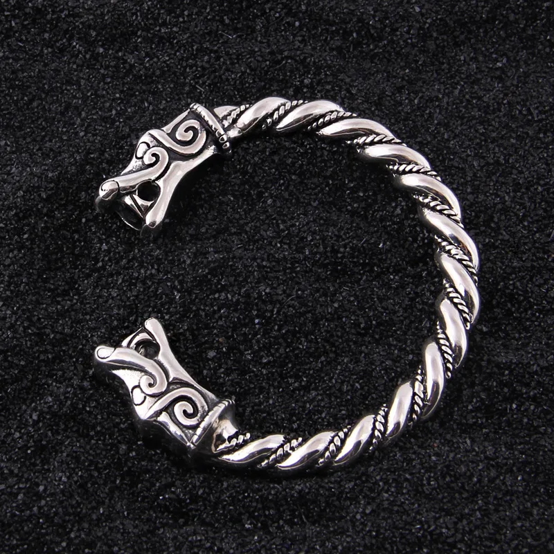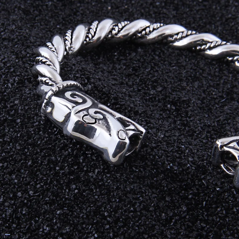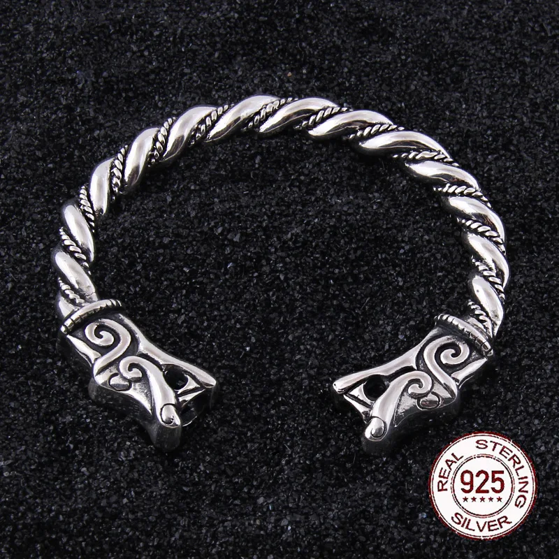Name:Sterling Silver Big Viking Dragon Bangle with wood box as gift for men or women