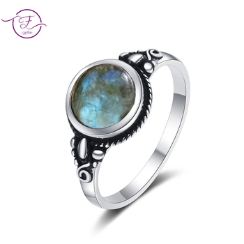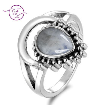 Mężczyźni i kobiety 925 Sterling Silver biżuteria pierścionek okrągły 8MM naturalny kamień księżycowy pierścień styl boho zaręczyny wesele prezent