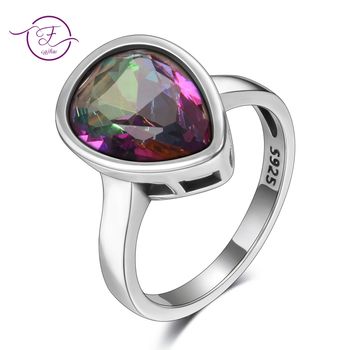 Genuine 925 Sterling Silver Jewelry Water Drop Rainbow Fire Mystic Topaz Rings For Women Fine Jewelry Anniversary Gift Wholesale