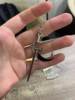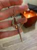 Those earrings are made of long metal swords and silvery metal thin hoops. They scream strength and empowerment!