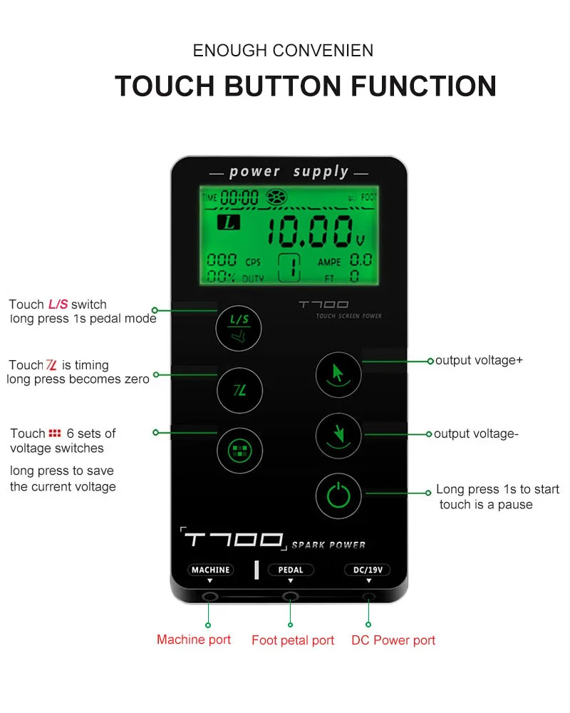 T700 Touch Screen Tattoo Power Supply UPGRADE Intelligent Digital LED Touch Pad Dual Tattoo Power Set Supply